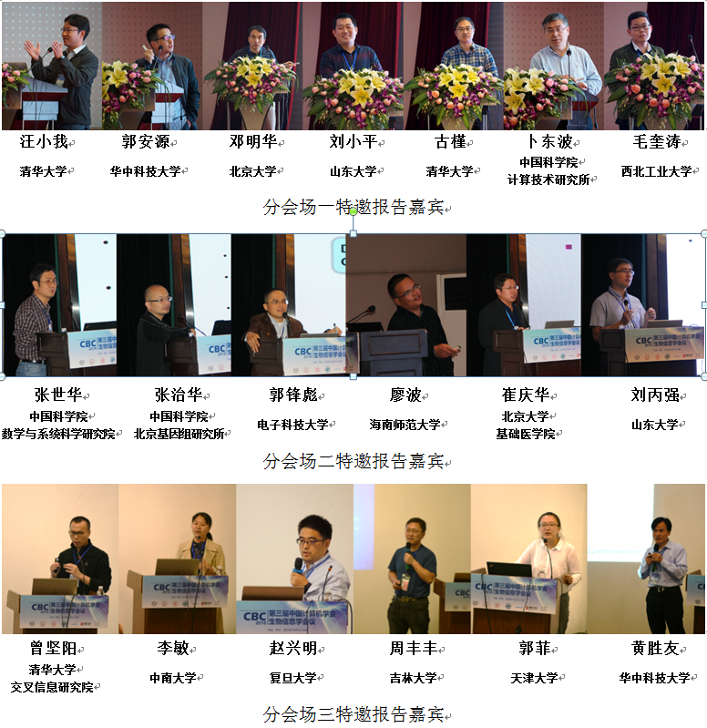 本次会议共邀请了7位大会特邀报告人和1位企业报告人。美国德克萨斯州立大学达拉斯分校、清华大学Michael Q.Zhang教授生动分享了生物信息领域的前沿研究内容以及取得的丰厚研究成果;哈尔滨工业大学王亚东教授深刻阐述了对生物大数据分析技术发展与挑战的理解和应对;中国科学院自化研究所蒋田仔研究员全面分析了脑网络组的前世今生及其未来面临的主要挑战和发展方向;四川大学章毅教授从网络结构、学习算法以及可能的生物解释三个方面为大家解析了Capsule神经网络;中国科学院上海生命科学研究院陈洛南研究员巧妙借助计算方法为大家开启了一场预测未来的奇幻之旅;中国科学院遗传与发育生物学研究所王秀杰研究员向大家展示了生物问题与计算方法完美结合的成功案例;上海交通大学沈红斌教授向大家介绍了蛋白质结构相关高难问题的研究进展。此外,浪潮(北京)电子信息产业有限公司朱红博士向大家剖析了三代基因测序组装中的高性能计算挑战及应对。