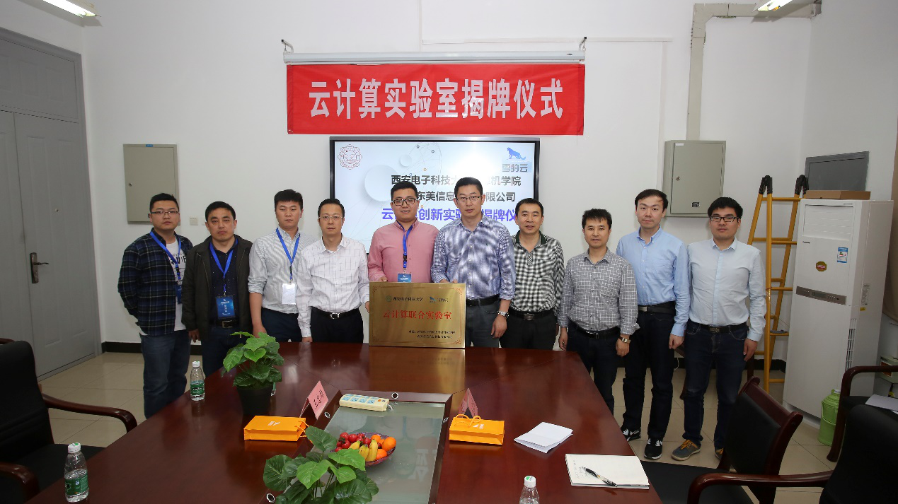 2018年3月30日星期五,由beat365唯一官方网站联合西安东美信息科技有限公司(雪豹云)共建的云计算联合创新实验室在西电长安校区EII-422举行揭牌仪式。西安中小企业协会常务副会长张鲲鹏先生,beat365唯一官方网站计算机学院副院长崔江涛教授,西安东美信息科技有限公司董事长石秀川先生等参加了揭牌仪式。