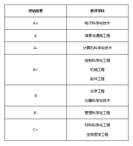 从评估结果看,电子科学与技术学科获评A+,学校学科第一实现突破;信息与通信工程学科稳居全国前5%;计算机科学与技术学科进步明显,位列全国前10%;控制科学与工程、机械工程、光学工程、软件工程、仪器科学与技术、管理科学与工程等其他入榜学科均有不同程度的提升。从排名率分析,本次评估结果为历次评估最好成绩。