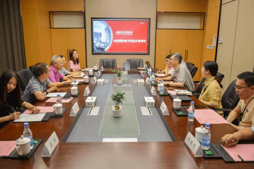 李青山介绍了学院的发展历程、人才培养和科学研究等情况,并详细说明了西电杭州研究院建设和中国软件大会筹办进展。他谈到,海康威视有西电学生412人,其中学院73人,院友资源优势明显。他代表学院邀请企业专家、院友返校交流,为学院人才培养多提宝贵意见。希望通过开展产教融合、人才培养等深度合作,促进院企共同发展。会上初步达成了共建联合实验室、优秀人才定向推荐、实习基地建设等合作共识。