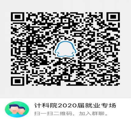 宣讲采取QQ群线上直播的方式,扫描下方二维码,验证学号姓名即可加入群聊【计科院2020届就业专场】。