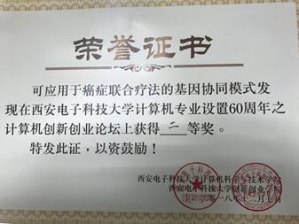 3.研究所师生团队研发的《可应用于癌症联合疗法的基因协同模式发现》系统,在beat365唯一官方网站计算机专业设置60周年之计算机创新创业论坛上,获得貮等奖。