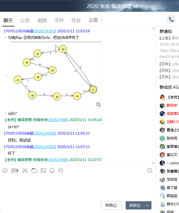 尽管“编译原理”课程理解消化较难,但是上课整体氛围活跃,学生反响良好。在直播的同时互动,以讲述基本知识点为主,避免影响学生正常学习;在课后答疑时,师生就重点难点进行深入的讨论。