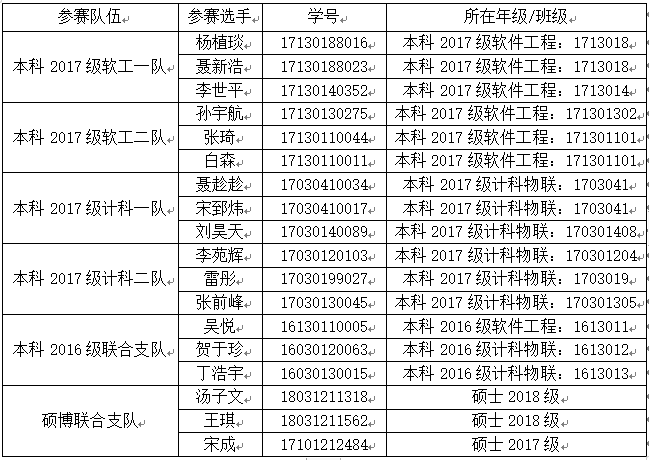 二、参赛对象:参赛选手从第二期大学生入党积极分子培训学员中择优选拔,其中本科16级、硕博研究生各选送1支队伍,本科17级计科物联、本科17级软件工程各选送2支队伍,每队均为3人。