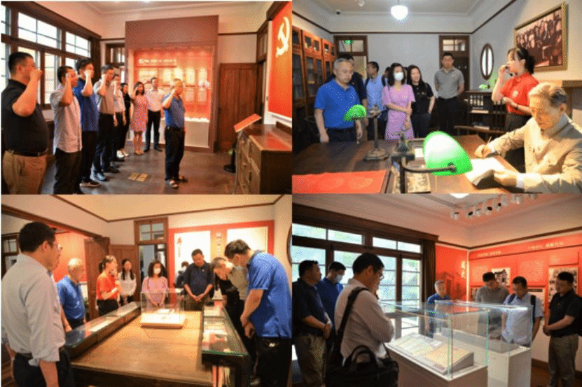 18日上午,双方来到《共产党宣言》展示馆(陈望道旧居)参观学习。通过“宣言中译信仰之源”和“千秋巨笔一代宗师”等部分详细了解了《共产党宣言》的诞生及其对中国革命乃至全世界的深远影响,以及陈望道校长坚定不移的信仰追求和笃志专注的学术风姿。学院党委书记李青山领誓,学院一行全体党员面向着中国共产党党旗共同重温入党誓词。