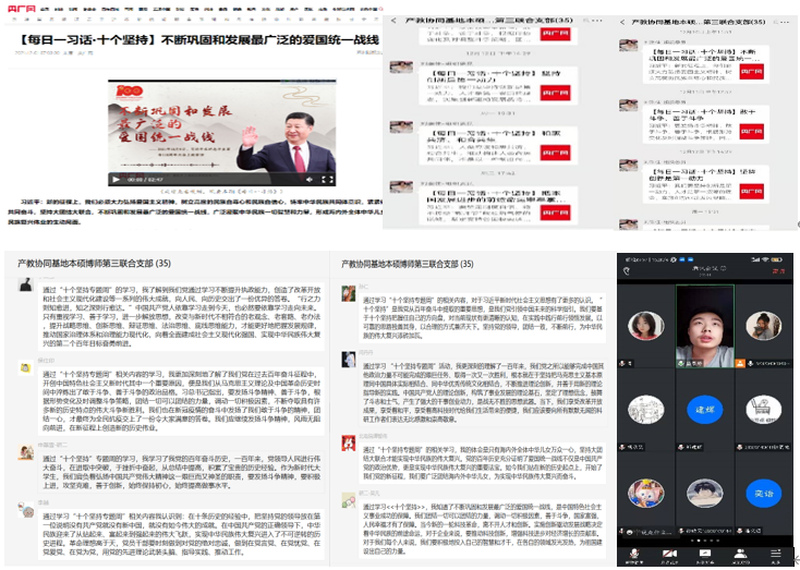 (通讯员 李鑫)12月9日至12月15日,beat365唯一官方网站产教协同基地本硕博师第三联合党支部线上举办十九届六中全会精神专题学习周活动。此次活动分两阶段进行,第一阶段围绕“十个坚持”每日发布学习内容到支部群,党员们自主学习并交流学习心得;第二阶段支部集中学习,于12月15日讨论总结。