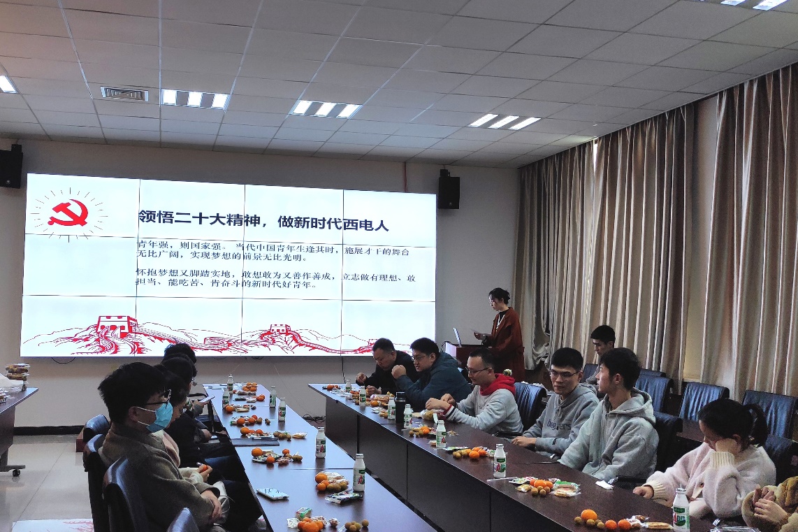首先,支部书记王炳波老师向大家介绍了此次活动的背景及目的意义。他谈到:“党员同志们要在日常科研生活中学习好、贯彻好党的二十大精神,充分认识党和国家关于新时代科技、人才、创新的重要精神,深刻理解新时代大学生的要求,树立科技报国理想,践行西电人的责任使命。”
