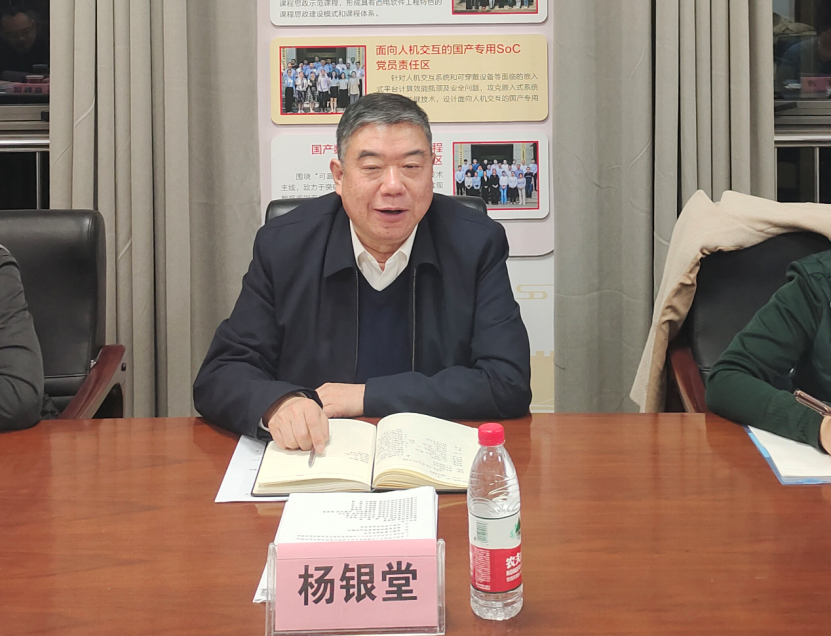 杨银堂就学院工作提出三点要求:一是加强理论武装。学院班子要学在先悟在前,加强对党的二十大精神和习近平新时代中国特色社会主义思想的学习,在党的创新理论指导下开展学院工作。二是加强政治建设。学院班子要加强谋划部署,增强班子战斗力和执行力。创新工作方式方法,切实提升师生思想政治教育工作质量。三是乘势而上、奋发有为开创学院工作新局面。学院在学科建设、科研平台建设、“三系”精神凝练、搬迁南校区等工作中取得了重要进展,学院要将党建与业务紧密结合,在师资队伍建设、科学研究、人才培养等方面取得更多的标志性成果,为特色鲜明一流大学建设做出贡献。
