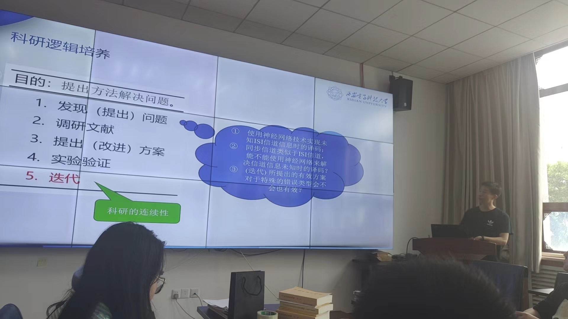 博士生党员马国臣分享了科研过程中的经验和心得,他从培养科研兴趣、选择研究方向、论文阅读技巧和撰写要点等方面出发,着重说明了科研工作中保持耐心和毅力是科研成功的关键要素。他谈到,在科研过程中会遇到各种困难和挑战,需要保持耐心和毅力,持续地探索和尝试,才能取得最终的科研成果。
