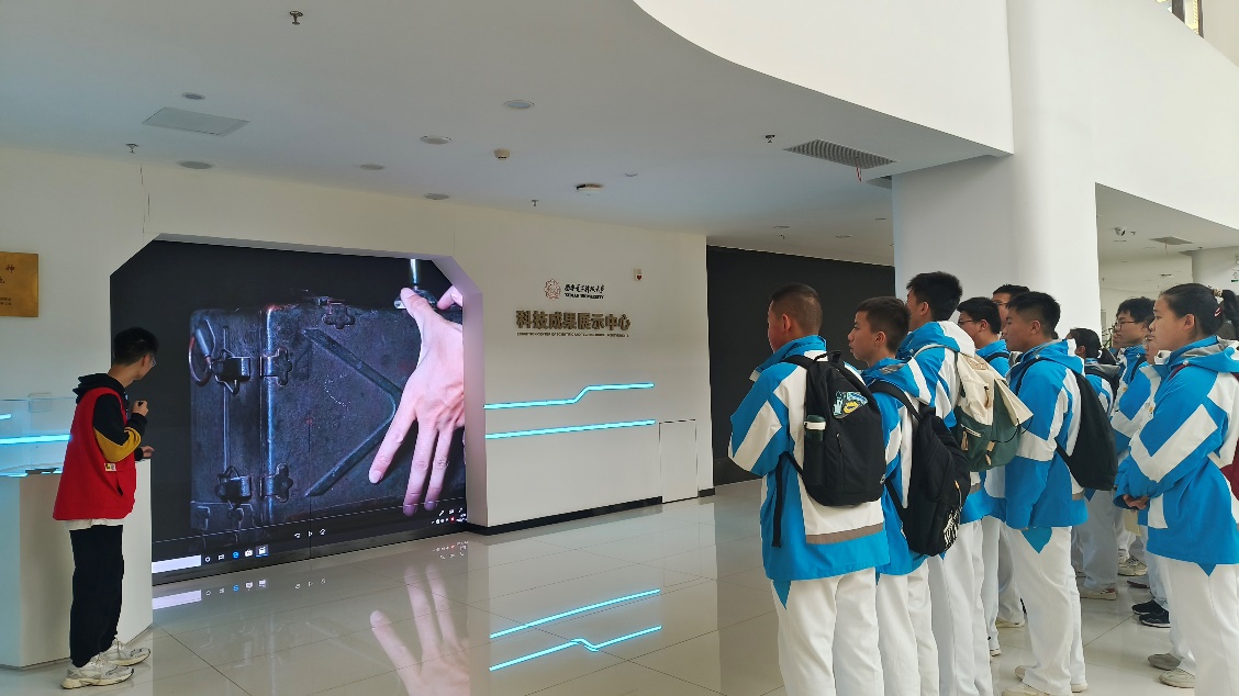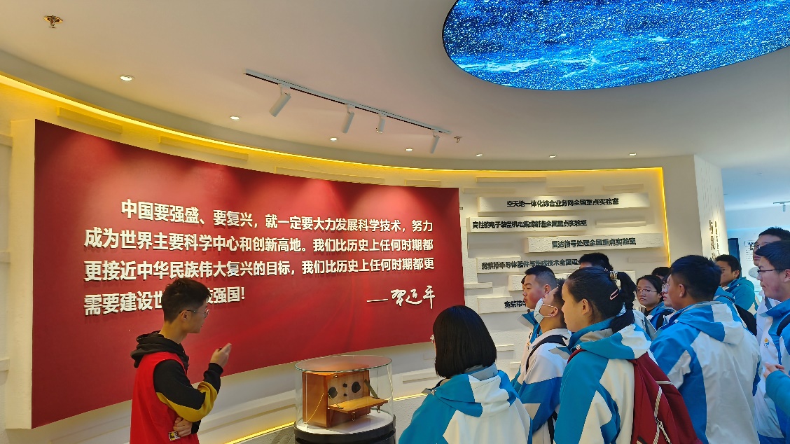 首先,党支部带领高新一中一行来到科技成果展示中心,志愿者介绍了无线通信技术、网络安全、信息处理与传输等领域的发展历程和所面临的难题,展示了我校自建校以来取得的一系列重大科技成果。支部党员们与同学们充分交流,耐心地解答提出的问题,拓展了同学们对通信以及计算机的认知与理解,深入了解了我校的红色基因和电子信息领域优势。