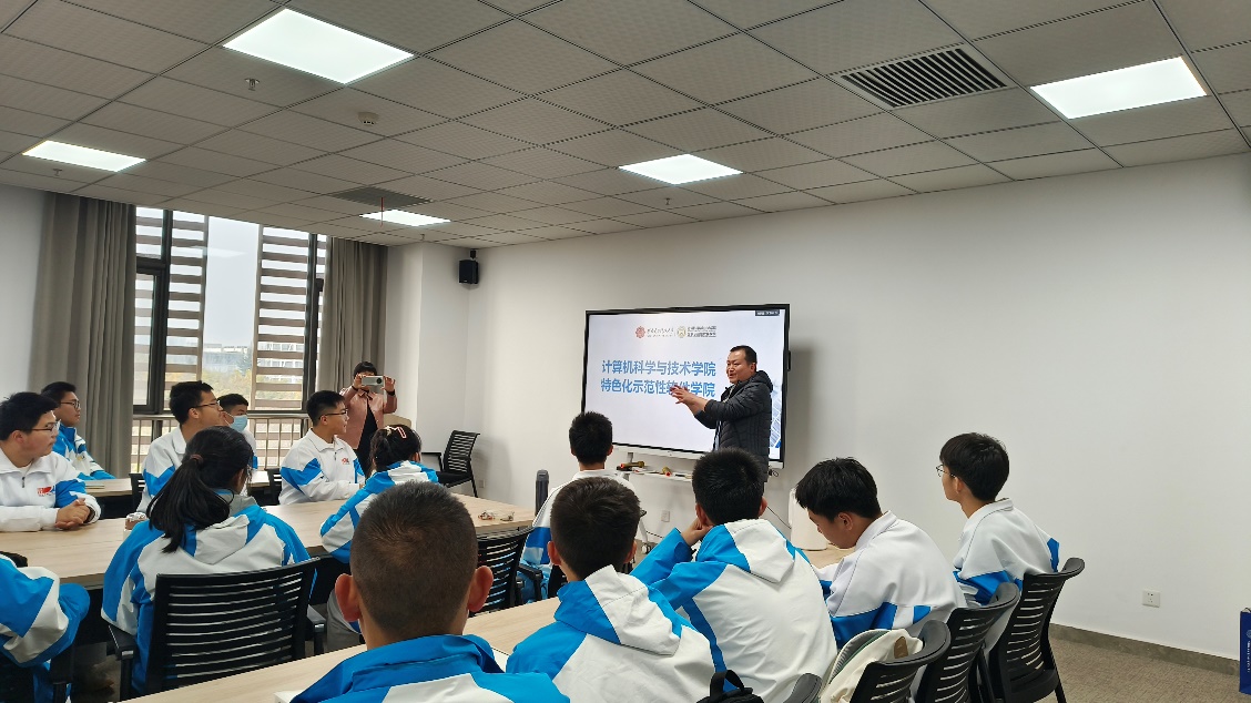 接着,计算生物信息学研究所本硕博师联合党支部在网安大楼A1-403会议室组织了跨校师生座谈会。王炳波对高新一中师生的到访表示欢迎,介绍了学院在学科建设、科学研究、人才培养等方面的特色工作,高新一中师生们对学院学科特色、科研实力和人才培养有了更全面的了解,激发了同学们对未来大学生活的向往和为之奋斗的决心。