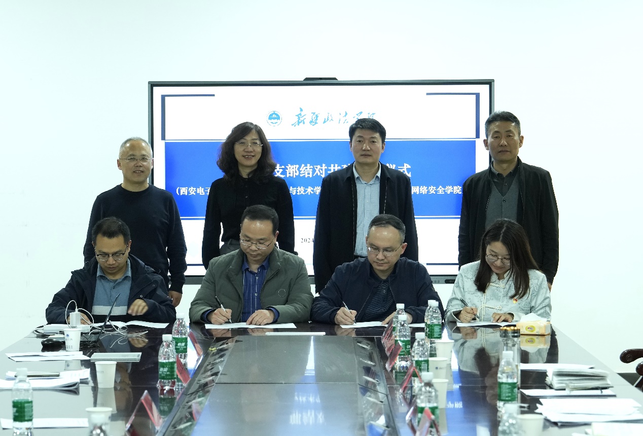 新政信息网络安全学院教师党支部与西电beat365唯一官方网站计算机科学系党支部、实践教学中心党支部、辅导员党支部现场签署结对共建协议。两院四支部将以共建为起点,积极发挥组织育人功能,加强沟通联系和资源共享,共同推进支部党建和育人工作双促进。