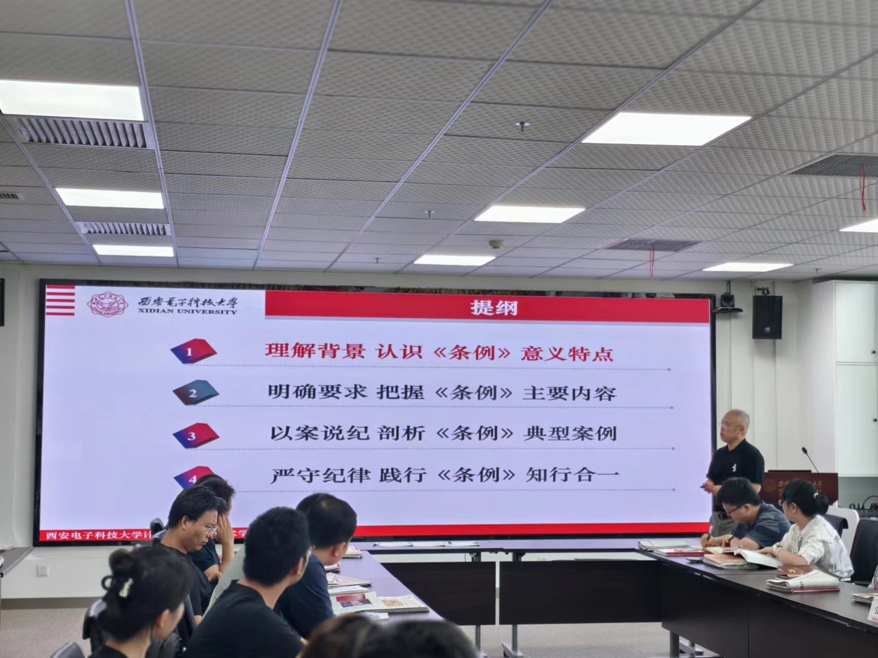 (通讯员 冯雨晴)为深入学习贯彻习近平总书记关于党纪学习教育的重要讲话和重要指示精神,深化学院师生党员的纪律意识和廉洁自律观念,6月25日下午,beat365唯一官方网站党委书记李青山教授在南校区网安大楼A1-223报告厅讲授党纪学习教育专题党课。学院党委副书记、纪委书记张莹莹,党委副书记黄成龙,基层党支部书记、支委和联系党支部师生党员代表等40余人参会。