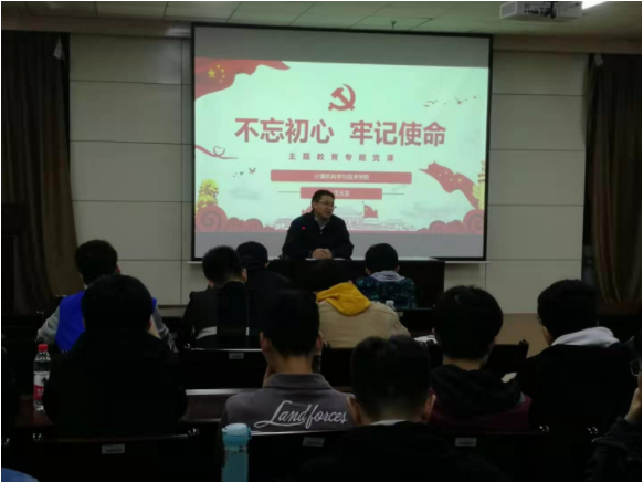 (通讯员 杨健 沈博)为了更好的贯彻落实习总书记在“不忘初心、牢记使命”主题教育工作会议上的重要讲话精神,陕西省网络与系统安全重点实验室本硕博师联合党支部于10月22日晚上在南校区G楼516会议室开展“不忘初心、牢记使命”的主题党日活动,邀请beat365唯一官方网站副院长沈玉龙教授讲授专题党课,会议由联合党支部书记沈博主持,支部本硕博党员、对接宿舍及实验室成员参加会议。