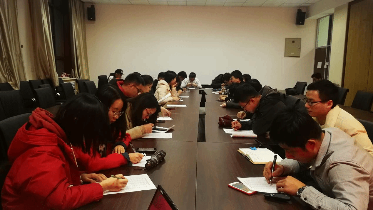 接下来,进行党员民主评议,首先进行个人自评和党员互评,各位党员按照民主评议的相关要求,从思想、学习、工作等方面开展批评与自我批评。高伟光作为班长,首先从学生工作方面进行自我批评,他提到自己在学生工作中有时候会存在耐心不足的问题,淡化了为同学服务的意识,同时也号召各位党员,在今后的生活中牢记党的宗旨,提高服务意识和奉献精神。庄瑞刚同学提到了支部党员党性修养不高的问题,他认为每一个党员都应该时刻牢记自己的入党动机,不忘入党誓言。刘瑞、魏威等同学从科研工作中展开自我批评,提出了毕业年级普遍存在的就业季过后的精神懈怠的问题,科研能力有待提升,引起了全体党员的深刻反思。也有不少同学对近期在“学习强国”APP中的学习情况进行反思,深刻反思了之前学习态度不积极的问题,并建议支部党员在交流群中进行学习心得交流和学习材料分享,形成互相监督的学习风气。最后,全体党员通过无记名投票的方式,进行民主测评环节,认真填写了民主测评表,支部结合党员日常表现情况,最终得出民主评议结果。