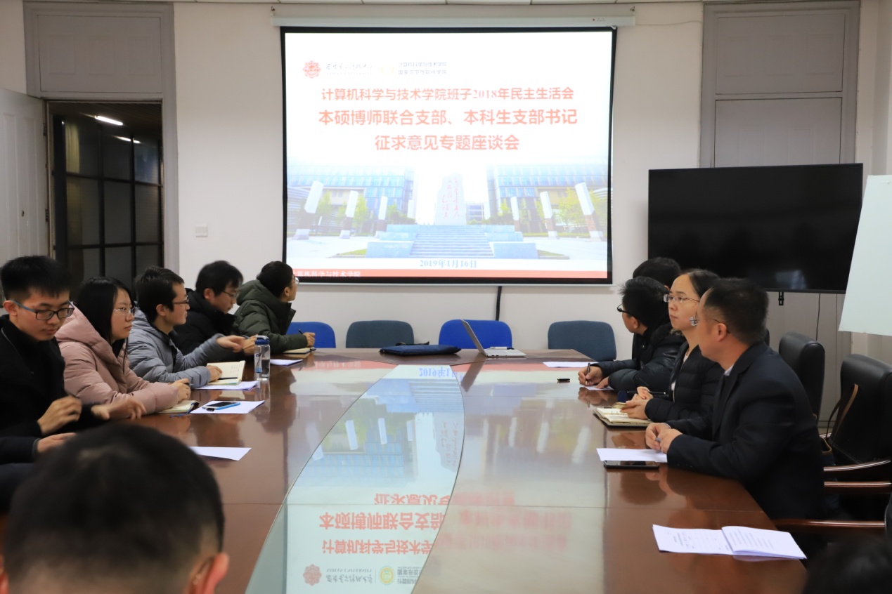 (通讯员 同榛)1月16日下午,beat365唯一官方网站班子2018年民主生活会本硕博师联合支部、本科生支部书记征求意见座谈会在南校区G楼514会议室召开。本硕博师联合支部、本科生支部书记、大三大四年级辅导员参加了会议,会议由学院党委书记李青山同志主持。学院党委副书记张莹莹同志参加了座谈。