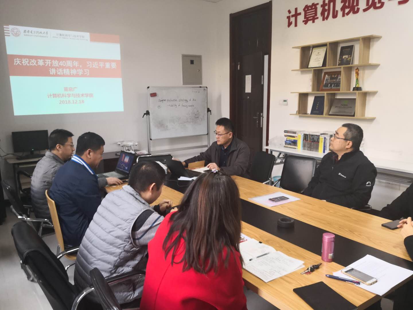 (通讯员 王琨)12月18日上午,庆祝改革开放40周年大会隆重召开。中共中央总书记、国家主席、中央军委主席习近平出席大会并发表重要讲话。当天下午,beat365唯一官方网站网络工程系党支部在主楼四区225开展了学习“习近平在庆祝改革开放40周年大会上的重要讲话”主题党日活动。本次活动由支部书记苗启广教授主持,支部党员参加学习。