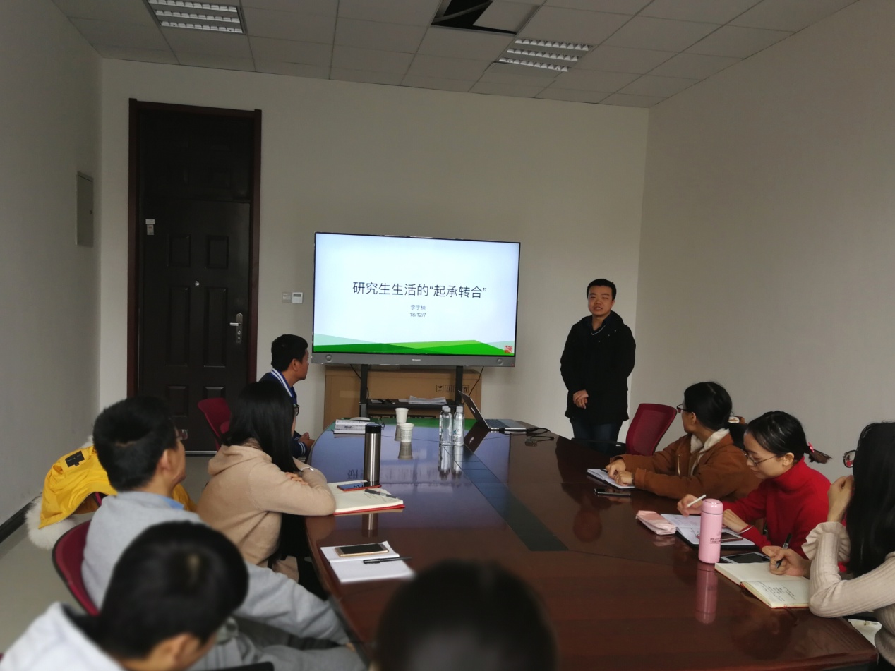 随后,支部邀请实验室优秀博士生李宇楠同志为大家介绍学习和科研经验,他建议一年级学生将专业学习与自身发展相结合选好适合的课程,将理论与实践相结合,编写优质的代码,要善于利用搜索引擎,多读论文,勤写文档,从而找出突破口,进行创新。此外,他讲述了科研工作是一个不断实验和改进的过程,鼓励大家要克服困难、坚持不懈。刚签约百度的胡旭同学介绍了求职面试的几个过程,他谈到学习应该持之以恒,从入学开始就应储备知识,不断加强实战技能,同时在求职中应该明确求职目标,合理安排时间。