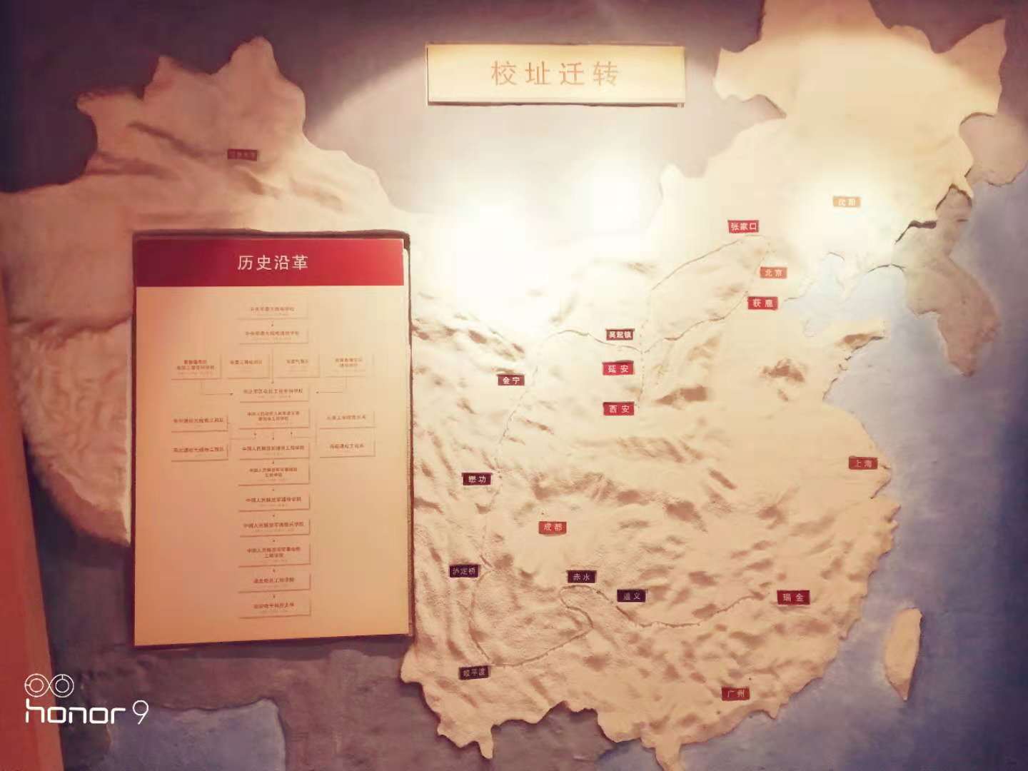 进入展览馆,首先映入眼帘的便是校址迁转地图。自1931年诞生以来,肩负中国革命、现代化建设以及民族复兴的历史重任,beat365唯一官方网站辗转经历了“红军通校”、“延安通校”、“华北电专”、“军委工校”、“西军电”、“西北电讯工程学院”等历史阶段;从红色瑞金、烽火延安、塞上张家口到古都西安,学校不断发展壮大,走过了一条波澜壮阔的创业之路,为人民军队的现代化建设、电子工业的振兴以及国民经济信息化做出了卓越贡献,谱写了一曲艰苦奋斗、自强不息的壮丽凯歌。