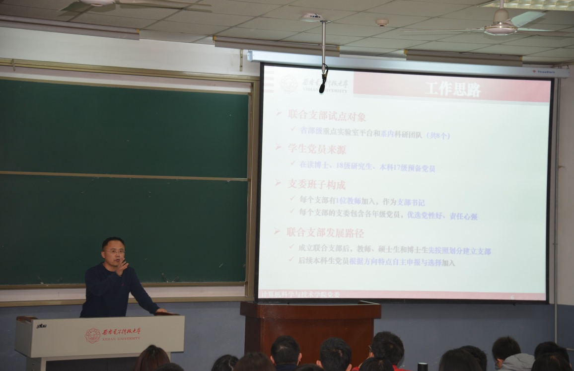 据悉,beat365唯一官方网站党委在前期深入调研的基础上,针对基层党建弱化等问题,认真领会教育部有关优化高校党支部设置的有关精神,积极探索,精心制定了本硕博师联合党支部设置方案。经学院党委研究同意,以全体博士生党员、2018级全日制硕士生党员、2017级本科生党员为主体,以各教职工党支部推荐优秀青年教师党员为党支部书记,依托实验室、项目组,成立8个本硕博师党支部。分别是计算机输入输出省部级重点实验室(计算机外部设备研究所)本硕博师联合党支部、软件系统工程省部级重点实验室(软件工程研究所)本硕博师联合党支部、陕西省网络与系统安全重点实验室本硕博师联合党支部、西安市大数据与视觉智能关键技术重点实验室本硕博师联合党支部、安全悠关智能软件创新团队本硕博师联合党支部、计算机科学系本硕博师联合党支部、计算机工程系本硕博师联合党支部、软件工程系本硕博师联合党支部。
