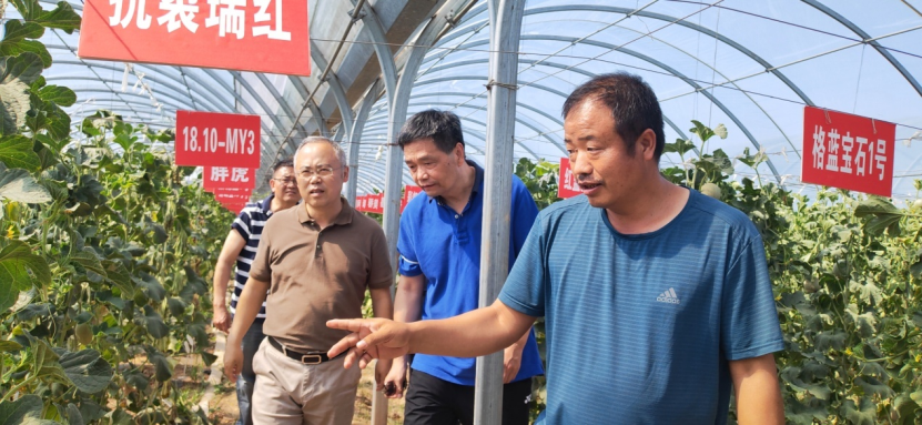 最后,学院一行来到“农掌门”西甜瓜试验基地,推进乡村振兴大数据平台建设。在负责人代崇化的带领下,学院一行实地参观了西瓜基地,对产品种类、耐受和抗裂实验等有了更加详细的了解。在交流中,双方就西甜瓜大数据平台建设达成共识,学院将进一步发挥人才和技术优势,帮助企业动态采集气候变化、西瓜生长、土壤特性等信息,更好地开展精准种植。