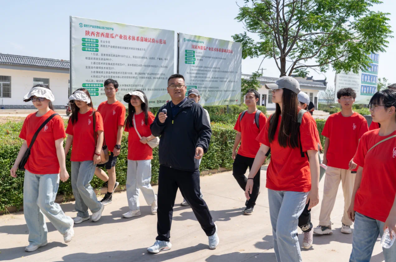 (通讯员 李栋)5月24日上午,由学校党委宣传部主办的“瓜棚里的思政课”在蒲城县西电产学研一体化农掌门示范基地成功举办。为进一步引导青年学子切身感受科技助力乡村振兴所取成效,涵养青年主动担当作为,beat365唯一官方网站组织13名本、硕团学骨干全程参与此次田间地头的沉浸式思政直播课,同时赴学院对口帮扶单位—蒲城县兴镇中心小学开展“小我融入大我”社区实践活动。学院党委副书记张莹莹、黄成龙参与此次活动。