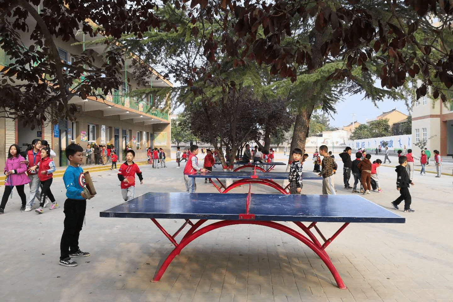 孩子们课间利用学院捐赠的乒乓球台打球