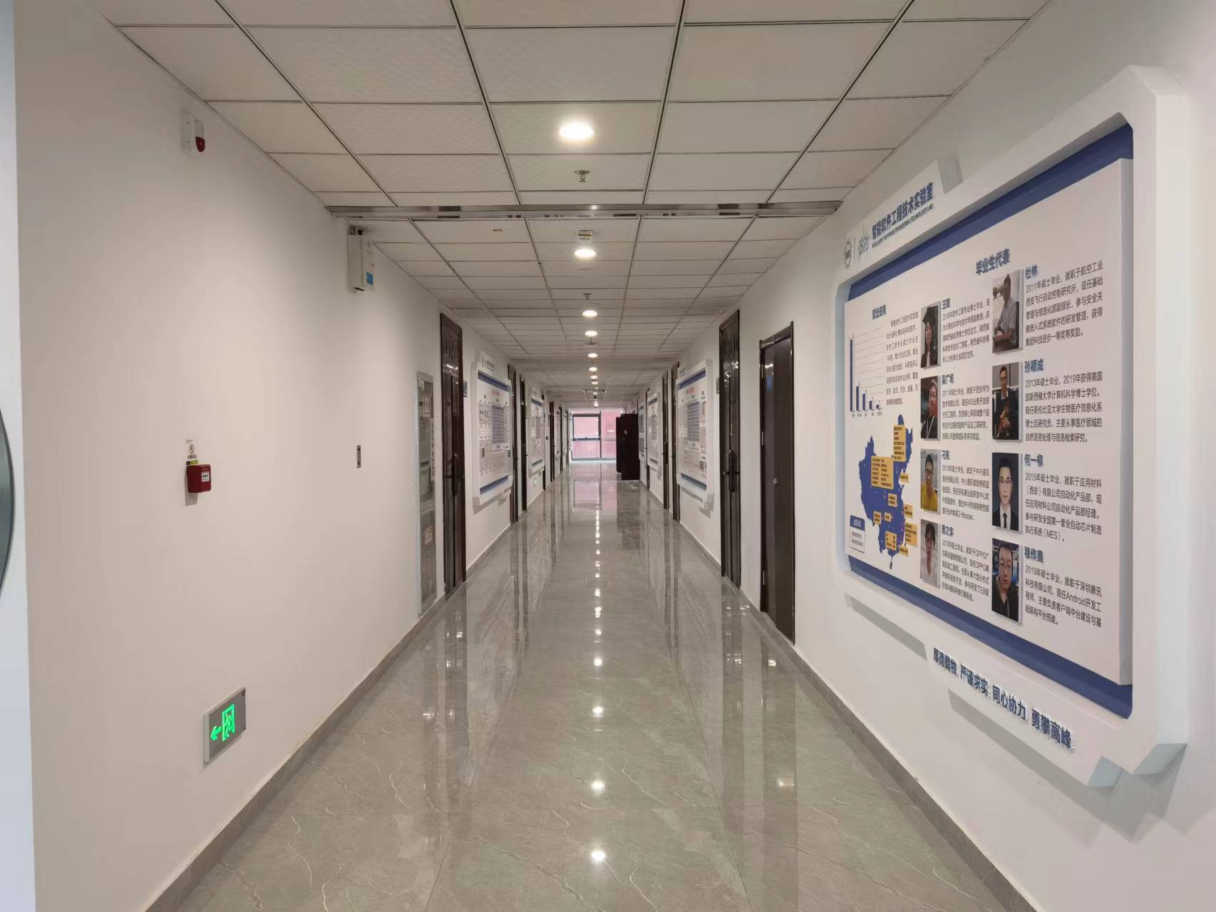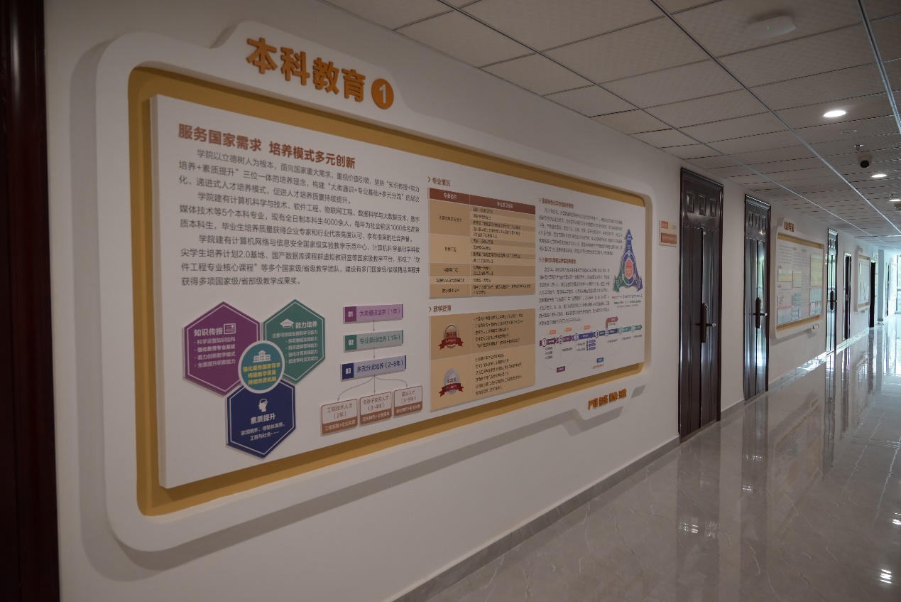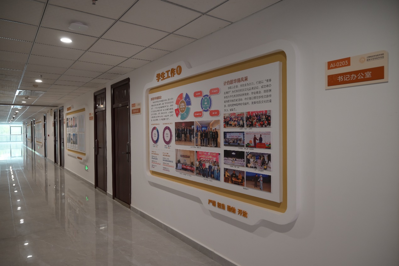 班子成员从网安大楼2楼学院的办公区域开始查验,仔细对形象墙、文化墙、教师墙和毕业生照片墙等各墙面的文化建设情况进行了检查,对整体设计情况表示肯定,同时也向文化建设项目的建设方提出了要求:尽快修正细节问题,为即将入驻的师生呈现最佳的文化环境和氛围,将学院的文化建设打造成精品工程。