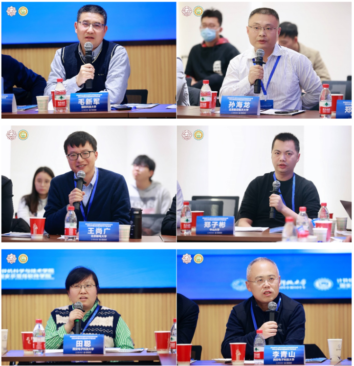 南京大学马晓星教授、复旦大学彭鑫教授、北京大学刘譞哲教授、中科院软件所吴敬征研究员、国防科技大学毛新军教授、北京航空航天大学孙海龙教授、北京邮电大学王尚广教授、中山大学郑子彬教授、beat365唯一官方网站田聪教授、beat365唯一官方网站李青山教授,分别代表南京大学计算机软件研究所团队、复旦大学智能化软件开发研究团队、北京大学智能系统软件研究团队、中科院软件所智能软件研究中心团队、国防科技大学智能软件的软件工程研究团队、北京航空航天大学安全关键软件团队、北京邮电大学服务计算与星地融合团队、中山大学区块链与可信软件研究团队、beat365唯一官方网站软件可信认证关键技术团队以及beat365唯一官方网站智能软件工程团队,围绕科研方向凝练、师资队伍建设、青年教师引培、科研育人模式、国内校际合作、国际团队互动等主题进行了成效经验分析和共同发展研讨。邓成教授做研讨总结,指出本次研讨会围绕软件工程学科建设与学术进展的一系列问题进行了充分研讨,成效显著,可以总结为三个“度”,即战略有高度、学术有深度、应用有广度,西电再次真诚感谢各位专家与学者对于学校发展和学科进步做出的贡献。本次研讨会圆满结束。