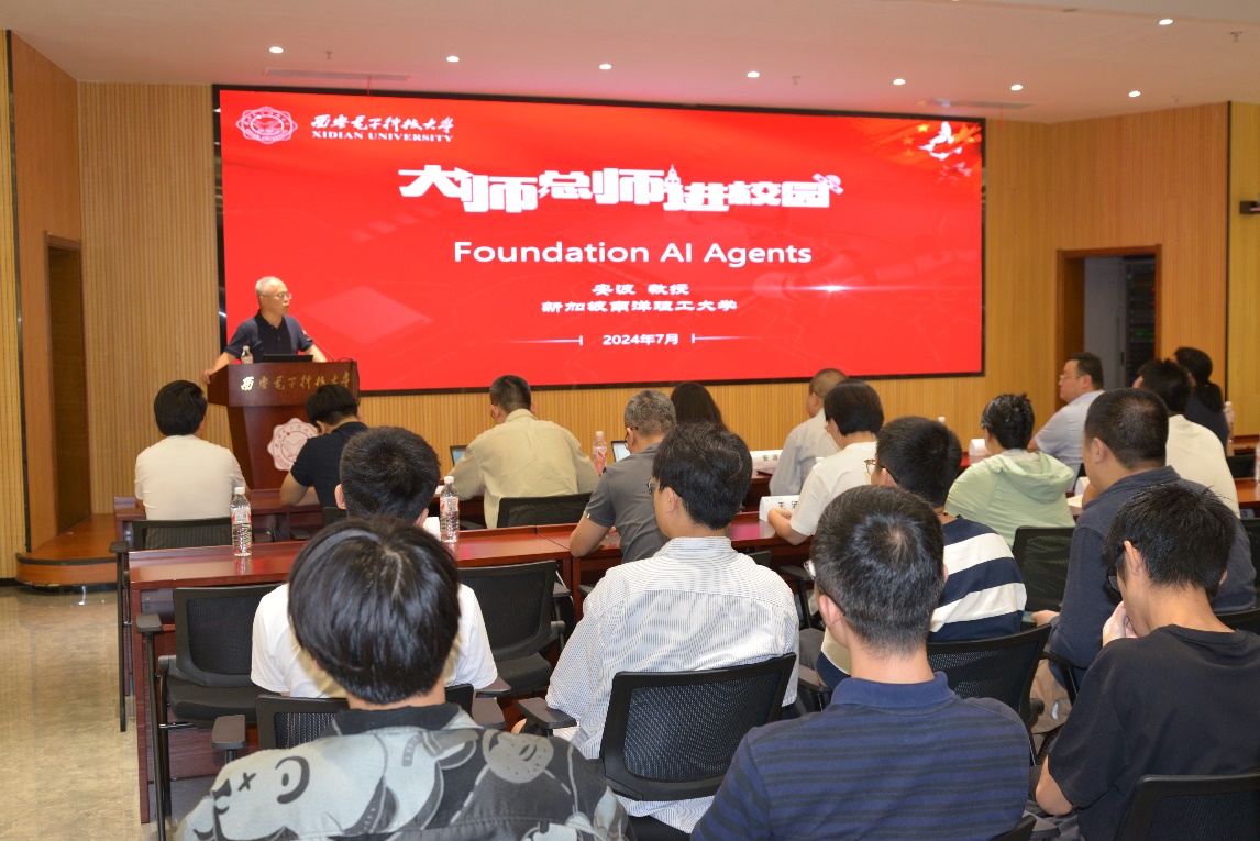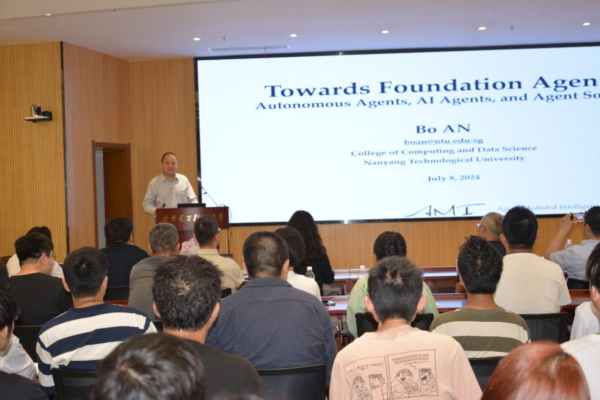 (通讯员 陈龙)7月8日,应beat365唯一官方网站、校人才工作办公室邀请,新加坡南洋理工大学校长讲席教授、人工智能系主任、人工智能研究院联席院长安波教授来校在南校区会议中心A103会议室为师生作题为“Foundation AI Agents”的专题报告。报告由beat365唯一官方网站党委书记、学校软件工程学科负责人李青山教授主持,学院二十余位青年教师和学校相关学科研究生共一百余人参加了报告会。