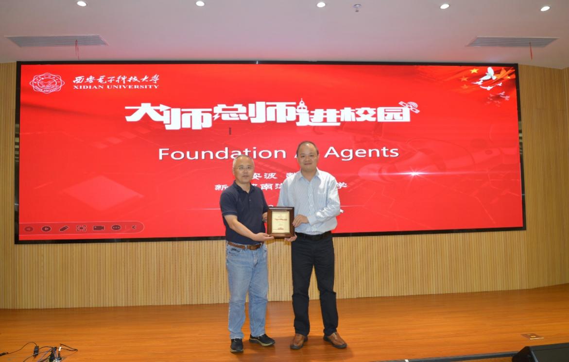 报告会现场氛围热烈,在提问交流环节,安波教授与师生亲切交流,细致回答了与会师生有关Agents以及AI大模型等方面的问题,也和学院参会教师就青年教师学术成长和职业发展等主题进行了交流互动。报告结束后,李青山代表学校向安波教授颁发了“大师总师进校园”专家报告纪念牌。