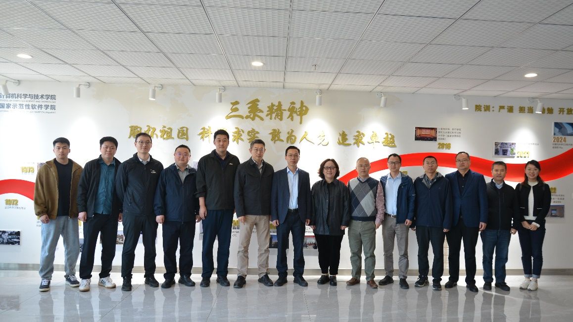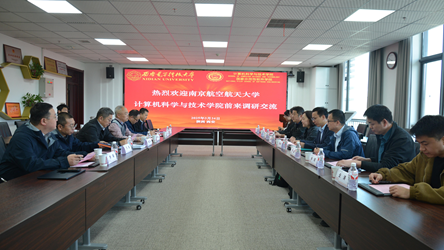 李青山对南航计科院一行调研表示欢迎,并在二楼学院形象墙介绍了学院的发展历程和组织架构等情况,回顾了2024年前往南航计科院调研的情况,希望兄弟高校之间能加强合作。