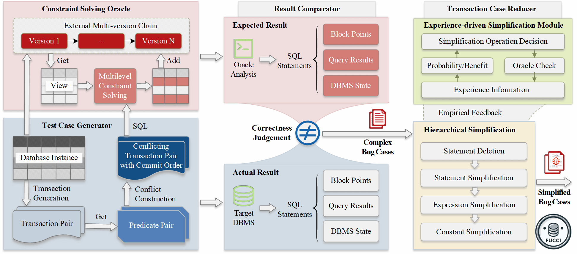 在会议期间,李辉教授在分组报告中向参会人员介绍了论文《Fucci: Database Transaction Fuzzing via Random Conflict Construction and Multilevel Constraint Solving》工作,并在海报展示环节与来自世界各地的参会专家、学生进行深入交流和探讨。该论文提出了一种新颖的数据库事务模糊测试框架 Fucci,旨在提升数据库事务漏洞检测的效率与准确性。Fucci 在MySQL、MariaDB和TiDB等主流数据库管理系统(DBMS)上共发现 6 个全新事务管理漏洞 和 14 个已知漏洞,其中多个漏洞已被官方确认并修复,为数据库事务漏洞检测提供了重要的学术参考。