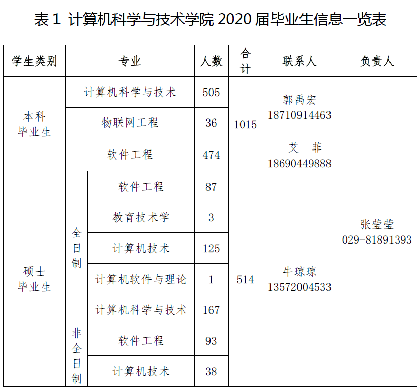 3)学院本硕毕业生生源信息及联系方式见表1。